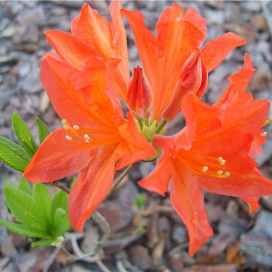 Цветки ширококолокольчатые, ароматные, оранжевые со светло-красным оттенком 3-4 см. в диаметре, собраны в соцветия по 15-20 шт. Зацветает до распускания листьев. Цветение очень обильное.