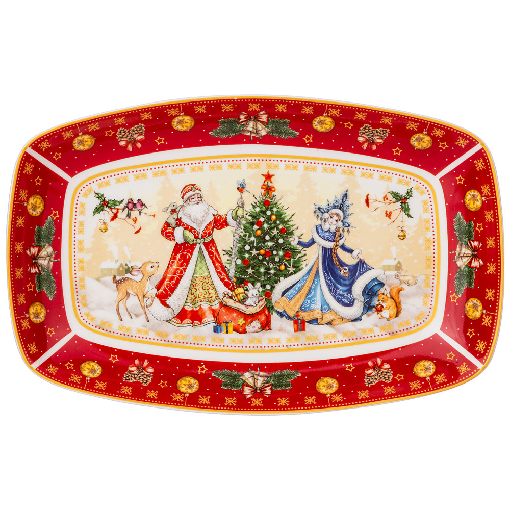 Блюдо Лефард Дед Мороз и Снегурочка -это яркое изящное кухонное изделие, применяется для сервировки стола и подачи еды. Идеально впишется на вашем праздничном столе и будет радовать вас на протяжении всего праздника. Изготовлено из фарфора и раскрашено в новогоднем стиле. Благодаря удобной форме легко поместится в раковину иди посудомоечную машину. Может стать отличным подарком. Дарите себе и близким прекрасное настроение!