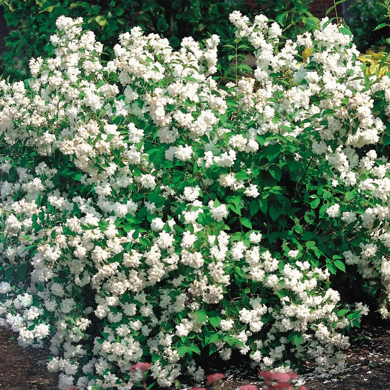 Чубушник венечный Шнеештурм (Schneesturm) – эффектный декоративный листопадный кустарник. Крона густая с дугообразными ветвями, диаметром 2,5 м. Растение красивоцветущее, многолетнее. Листья темно-зеленые, заостренно-овальные, осенью приобретают желтый окрас.