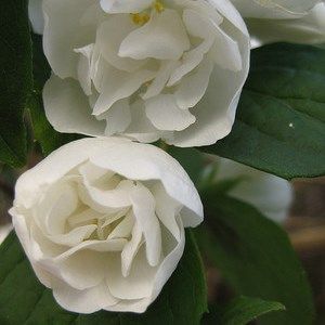 Цветки белые, махровые, крупные, до 5 см. Сильный стойкий аромат.