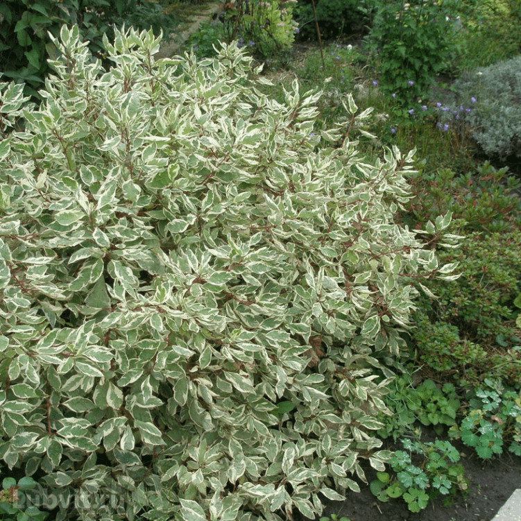 Дерен белый Сибирика Вариегата (Sibirica Variegata) – эффектный декоративный листопадный кустарник, с кроной диаметром 350 см. Побеги тонкие и гибкие, направлены вверх. Листья мягкие, широкоовальные, имеют свойство менять свой окрас.