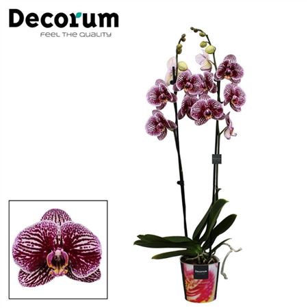 Фаленопсис Блэк Страйпс (Phalenopsis Black Stripes) – это многолетнее растение, относящееся к семейству Орхидных и к роду Эпифитов, то есть орхидей, использующих другие растения в качестве опоры. В природе растут во влажных лесах Юго-Восточной Азии и Северной Австралии. Фаленопсис Блэк Страйпс принадлежит к гибридному сорту, имеет длинные вытянутые овальные листья, цветет крупными (до 10-11 см) цветами характерной формы, похожей на крылья бабочки. Цветки белого цвета со сплошным ярким узором в виде малиновых полос. Максимальная высота взрослого растения 70 см.