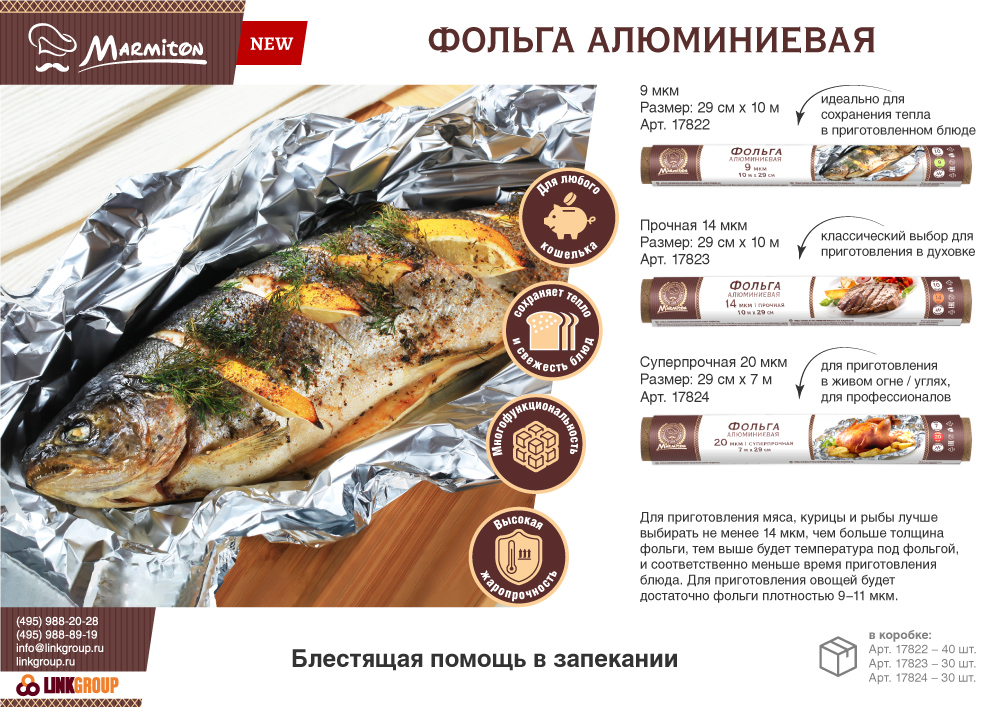 Фольга алюминиевая Мармитон, экстрапрочная 29смх7м арт.17824 купить в Москве и области, по низкой цене в интернет-магазине Дарвин