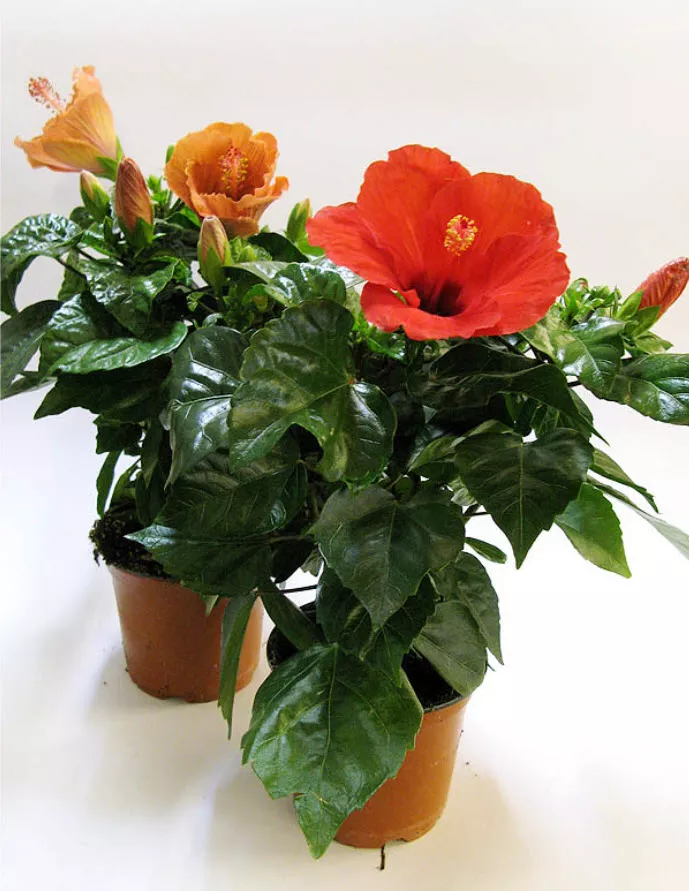 Гибискус или китайская роза – это тропическая соблазнительница с эффектными цветами-грамафонами и пышной глянцевой листвой глубокого зеленого цвета, которая заставит вас мечтать о гавайских пляжах. Своими великолепными цветами она вскружиит вашу голову и воспламенит ваше сердце. Гибискус известен своими воронкообразными цветами самых ярких красивых окрасов, которые сделают интерьер и сад праздником жизни до октября месяца. Цветение гибискуса характеризуется тем, что каждый день распускаются большие цветы, то есть растение будет вас радовать новыми цветами день за днем... Просто захватывает дух, потому что гибискус превращает любой дом в тропический рай!