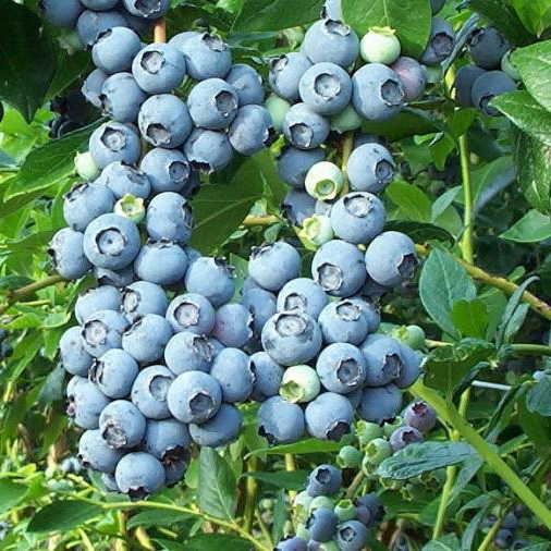 Плоды крупные до 15-20 мм, мякоть плотная. Форма голубики слегка приплюснутая сверху и снизу. Цвет ягоды светло-голубой, с налетом. Ягоды на вкус сладкие с кислинкой. Ароматные, сочные. Урожайность взрослого куста до 8-9 кг