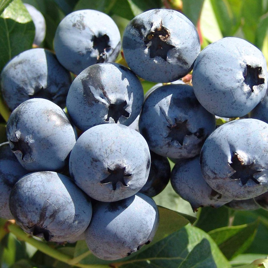 Плоды диаметром до 3 мм, вес 2,5 г, мякоть плотная. Форма округлая, слегка приплюснутая по бокам. Цвет ягоды темно-синий. Ягоды на вкус кисло-сладкие, ароматные, сочные. Урожайность взрослого куста до 5-7 кг.