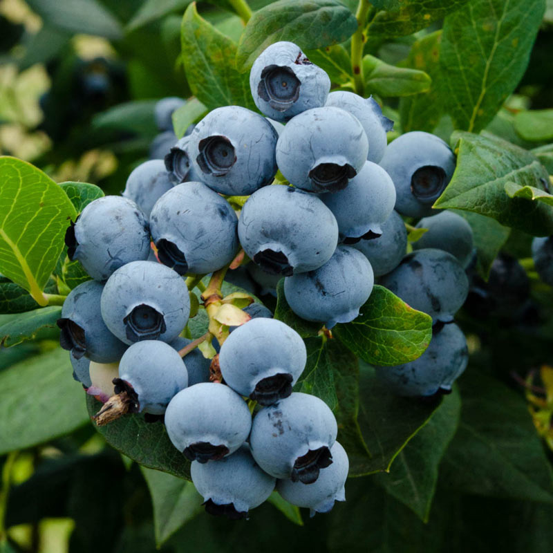 Плоды крупного размера до 17-20 мм, вес до 2,5 г, с нежной мякотью. Форма округлая, слегка приплюснутая. Цвет у ягоды светло-голубой с восковым сизым налетом. Ягоды на вкус кисло-сладкие, ароматные. Урожайность взрослого куста до 6-8 кг.