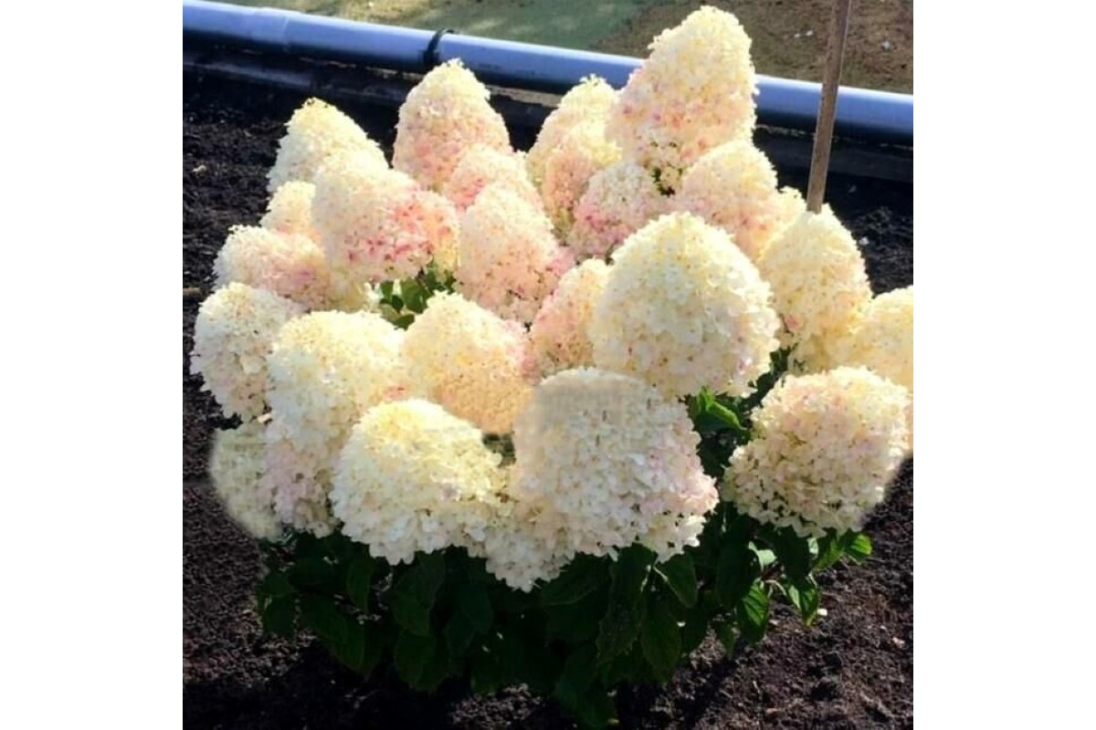 Куст в высоту и ширину не превышает 80 см., что позволяет высаживать Шуга Раш даже в вазоны. Побеги крупные, плотные, растут вертикально, не требует поддержки. Белоснежные соцветия распускаются в июле, затем приобретают легкий розовый румянец. Средняя длина соцветий составляет 20–30 см.
