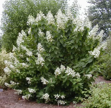 Растение гортензия метельчатая Тардива – декоративное и долго цветущее дерево. Высота взрослого растения 3 м, диаметр 1.5 м. Крона густая, округлой формы. Соцветия пирамидальной формы, белоснежного цвета, к осени приобретает розовый оттенок. Продолжительность цветения с августа по октябрь.