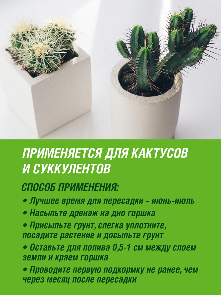 - Применение: пересадка и выращивание кактусов,
