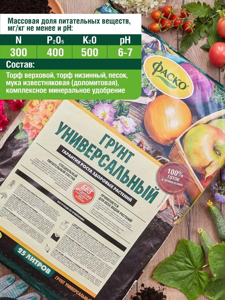 Грунт универсальный Фаско является экологически чистым грунтом, который полностью готов к эксплуатации. Основа благоприятной почвы состоит из качественного торфа с добавлением всех необходимых полезных элементов. Благодаря пропорциональному составу и балансу кислотности, грунт универсальный Фаско является оптимальной средой для активного роста растений. Высокая влаго- и воздухоемкость, и другие физические качества стимулируют прорастание семян, обеспечивают растения влагой, а также повышают их устойчивость к болезням!