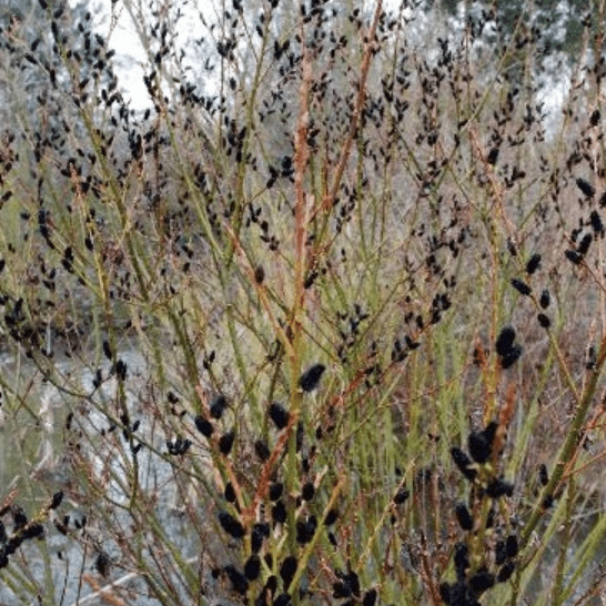 Ива тонкостолбиковая Меланостахис (Melanostachys) – листопадный декоративный кустарник с шаровидно-приплюснутой кроной, диаметром 1,2 м. Листовые платины продолговатые, темно-зеленые.