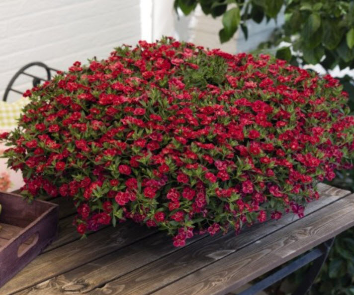 Калибрахое в кашпо — это эффектное ампельное растение, известное своими мелкими, но яркими цветами, которые могут быть желтыми, розовыми, фиолетовыми или белыми. Цветет обильно с весны до осени, создавая каскады из цветков. Идеально подходит для подвесных кашпо и контейнеров, добавляя яркие акценты на балконах и террасах. Калибрахое предпочитает солнечные места и хорошо дренированные почвы. Регулярный полив и подкормка способствуют продолжительному цветению и здоровью растения. Устойчиво к засухе, но лучше всего развивается при умеренной влажности. Это растение станет прекрасным украшением любого сада или уличного пространства.