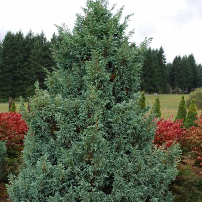 Кипарисовик горохоплодный Булевард (Chamaecyparis pisifera Boulevard) Кипарисовик горохоплодный Булевард - декоративный кустарник с серебристо-голубой хвоей. Хвоя густая и мягкая. Летом, цвет хвои серебристо-голубой, зимой серо–голубой. Ветви растут горизонтально. Форма кроны - коническая. Высота взрослого растения достигает 2м.