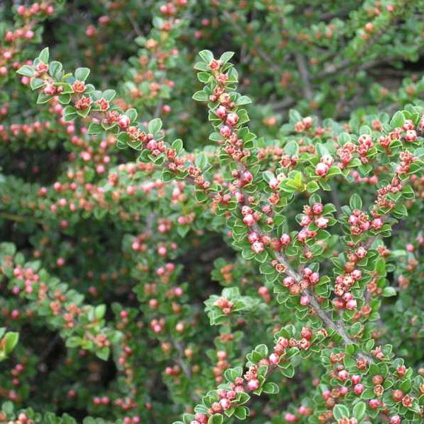 Кизильник крошечный (Сotoneaster perocumdens) – многолетнее вечнозелёное растение с декоративным назначением. Почвопокровный низкорослый куст. С распростертой кроной, длинными ветвями, со стелющимися ползучими и укореняющимися побегами. Крона диаметром 150 см. Листья очень мелкие, темно-зеленые, осенью приобретают ярко-красный оттенок.