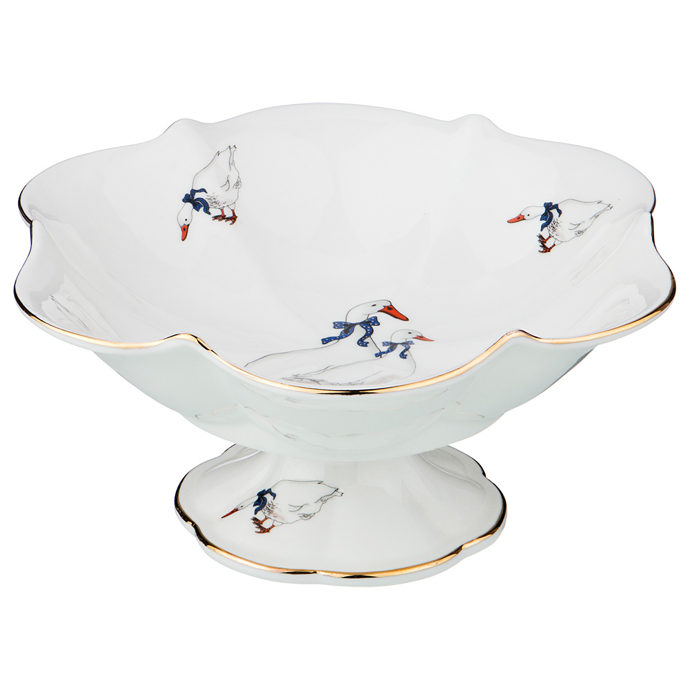 Конфетница Гуси применяется для хранения и подачи конфет, пирожных, печенья и других сладостей. Имеет удобную форму, легко уместится на столе или журнальном столике в гостиной. Изготовлена из качественных материалов, устойчива к воздействию горячей пищи, влаги и ультрафиолетовых лучей. Можно очищать в посудомоечной машине на режиме для стекла. При появлении трещин, утилизируйте товар. Изделие безопасно при правильном применении.