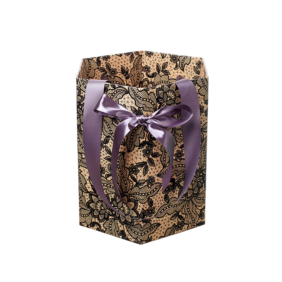 Коробка подарочная с вазой Кружево, D25xH27см, натуральный/черный купить в Москве и области, по низкой цене в интернет-магазине Дарвин