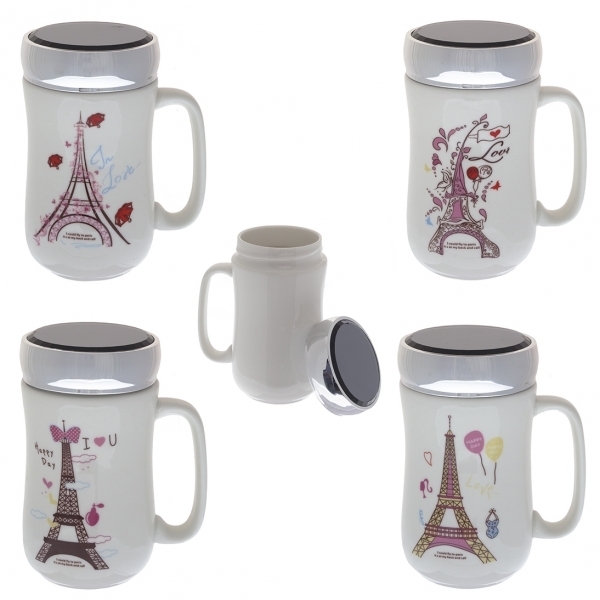 Кружка Париж, 300мл с крышкой, W7,5 H14см, 4в