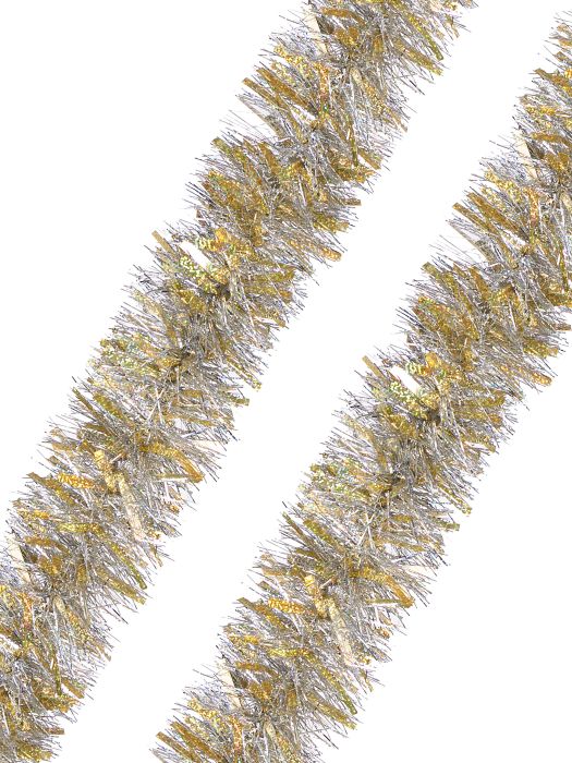 Мишура новогодняя Серебро с лимонными вставками – быстрое и эффективное решение для оформления Вашего дома, офиса, создания новогоднего образа – это сверкающая мишура. Проверенное временем украшение на все случаи праздника, будь он в помещении или на улице. Мишуру можно вплести в рождественский венок, декорировать маскарадный костюм, оформить подарок или, как заключительный штрих, накинуть на новогоднюю ёлку. Особенностью этого товара является универсальное сочетание золотистого и серебристого материала.