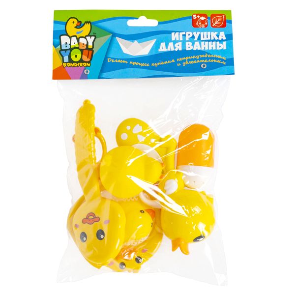 Набор игрушек для купания из серии BABY YOU развивает мелкую моторику, цветовосприятие и воображение ребенка, способствует формированию у него правильно