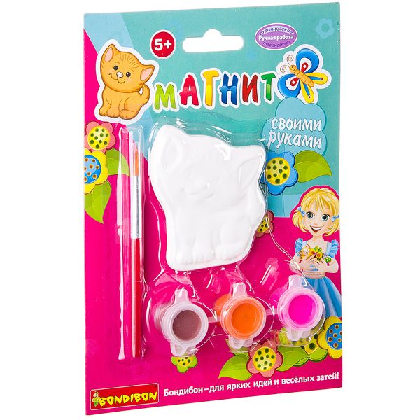 Набор для творчества Бондибон Магнит Кошка- это отличный вариант подарка для развития творческого потенциала вашего ребёнка и проведения занимательного и продуктивного досуга. В результате маленький непоседа самостоятельно распишет керамическую фигурку в виде кошки. В набор входят: керамическая фигура-магнит, краски, кисть. Данный набор рассчитан на использование детьми от пяти лет.