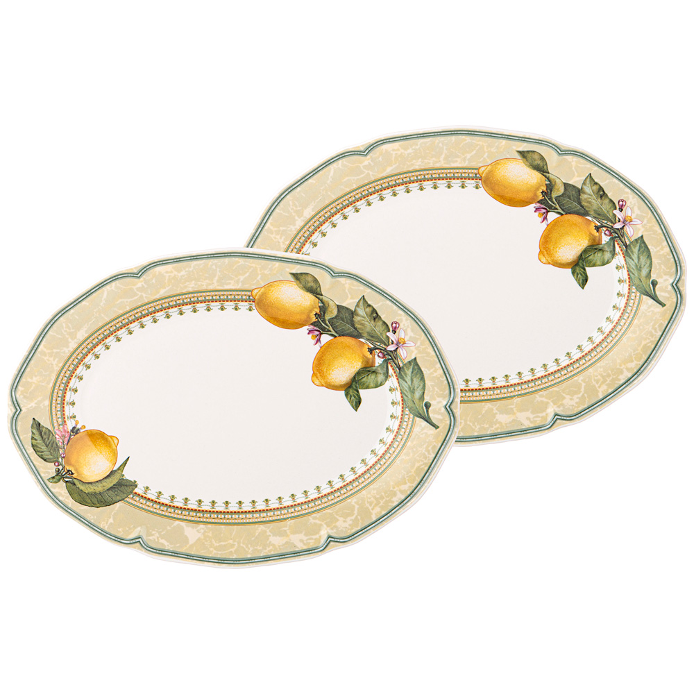 Набор блюд Лефард Лимоны - это комплект из двух овальных тарелок, изготовленных из фарфора, с длиной 25 см каждая.