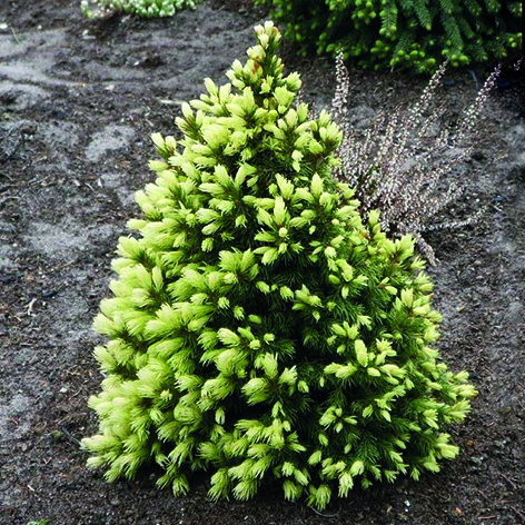 Форма кроны конусовидная. Хвоя мелкая, очень мягкая, светло-зеленая. Особый шарм Дейзис Вайт придают молодые приросты кремового цвета, появляющиеся на побегах два раза за сезон.Ветки короткие, настолько плотно расположены между собой, что между ними нет просвета. Ствол не проглядывается. Для посадки ели канадской Дейзис Вайт желательно выбирать место в легкой полутени или на солнце. Почвы предпочитает слабокислые, питательные, дренированные. Хорошо отзывается на обильный полив без излишнего застоя влаги.</br>