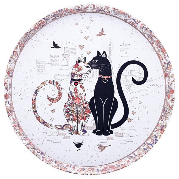 Поднос сервировочный Парижские коты - это удобное и практичное изделие, на котором помещаются достаточно много предметов. Поднос изготовлен из прочной стали, за счёт чего он стойкий к ударам и падениям. Поднос имеет красивый дизайн, на нём изображены парижские коты. Данный товар легко впишется в интерьер любой кухни и станет незаменимым помощником в быту. На таком подносе можно разместить столовые приборы, перенести их на балкон или веранду и наслаждаться там вкусным чаем. Такой поднос по достоинству оценят люди, которые не любят тратить лишнее время, ведь удобнее всего составить всё на данный поднос.