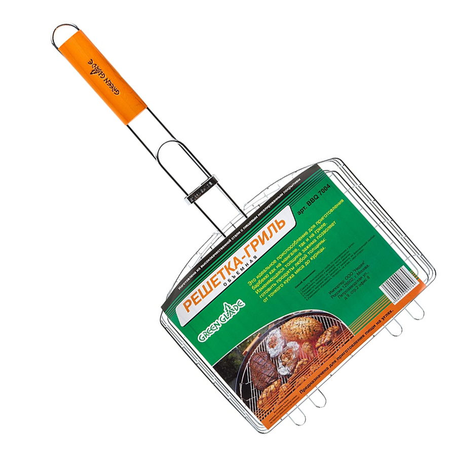 Двойная объемная решетка-гриль предназначена для приготовления пищи на огне. Она отличается вместительностью, прутья решетки расположены достаточно близко друг к другу, чтобы мясо и мелкие ингредиенты не выпадали. Современное покрытие позволяет очищать решетку легче и быстрее, а ее небольшой вес облегчает хранение. Очищается водой и бытовыми средствами, не требует особых условий хранения. Изделие безопасно при использовании по назначению.