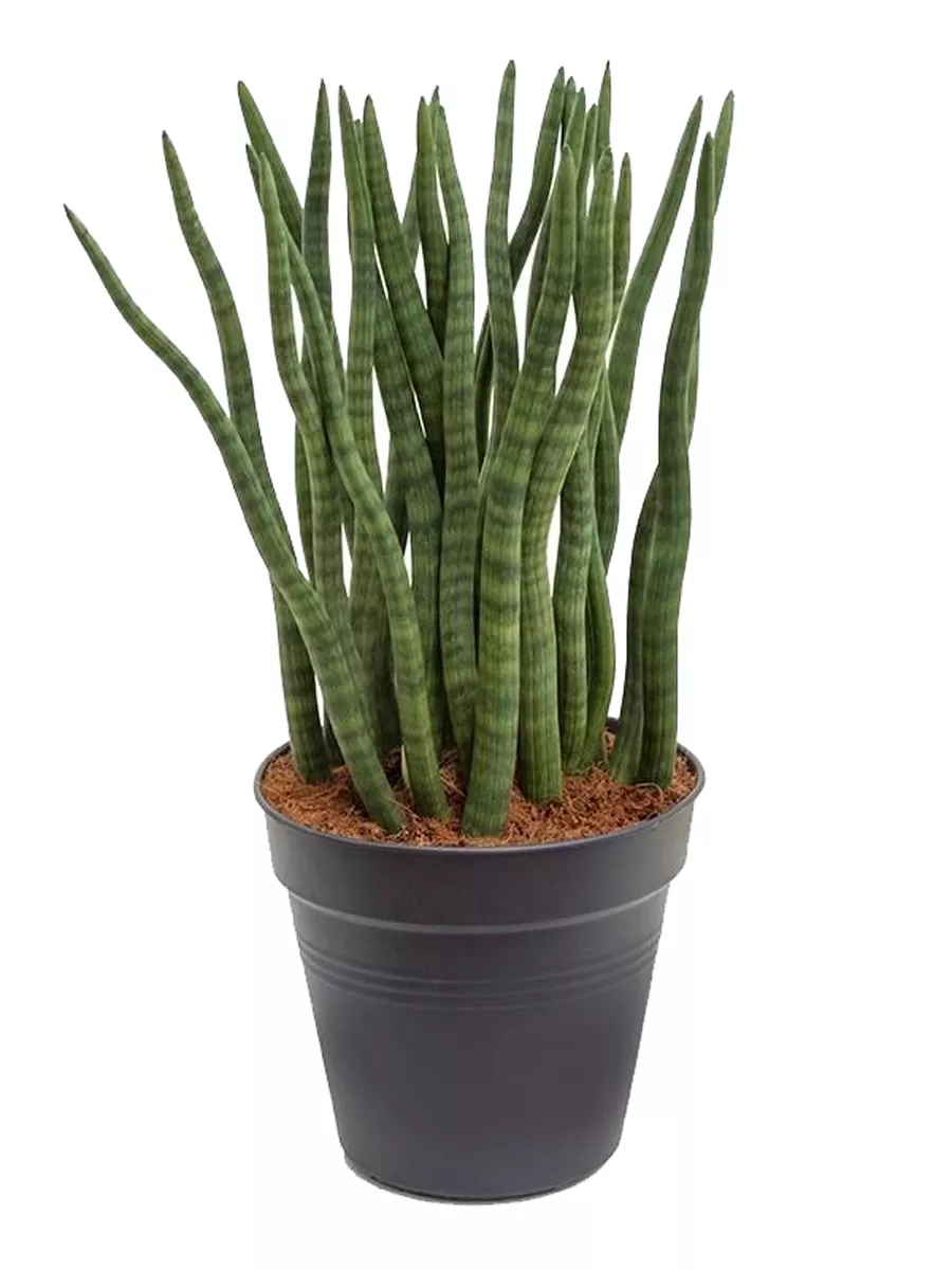 Сансевиерия цилиндрическая – многолетнее бесстебельное растение, известное своими длинными прямостоячими листьями. Растение не цветет, однако имеет очень красивые темно-зеленые листья со светло-зелеными вкраплениями. Для содержания достаточно комнатной температуры, а зимой ее можно понизить до +16 градусов. Полив умеренный, в зимнее время года он реже, чем летом. Сансевиерия размножается листовыми черенками и разделением корневища.