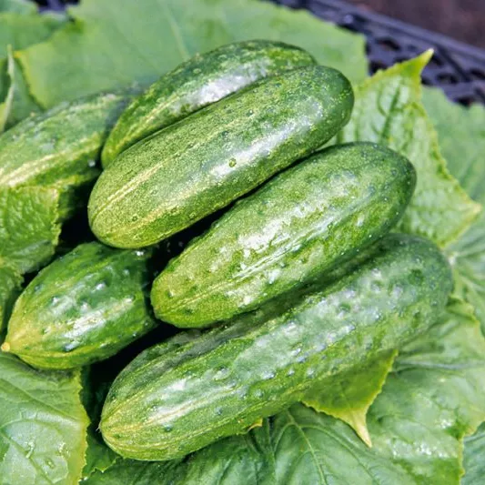 Форма плода овально-цилиндрическая. Кожура светло-зеленого цвета, бугорчатая со светлыми полосами. Вкус классический. Мякоть сочная и плотная. Высокие вкусовые качества. Вес плода 40-50 гр.