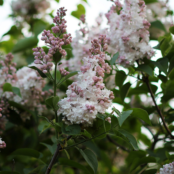 Бутоны крупные розовато-лиловые, цветки нежного бело-розового оттенка, махровые. Цветки с возрастом светлеют, приобретая жемчужно-белый цвет. Цветение обильное. Что касается аромата, то его оценивают как сильный, оригинальный.