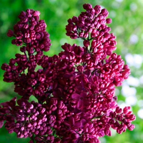 Цветки красные, с вишневым оттенком, простые, бархатные собраны в пирамидальные крупные соцветия. Длина соцветия 15-20 см. Цветение обильное.