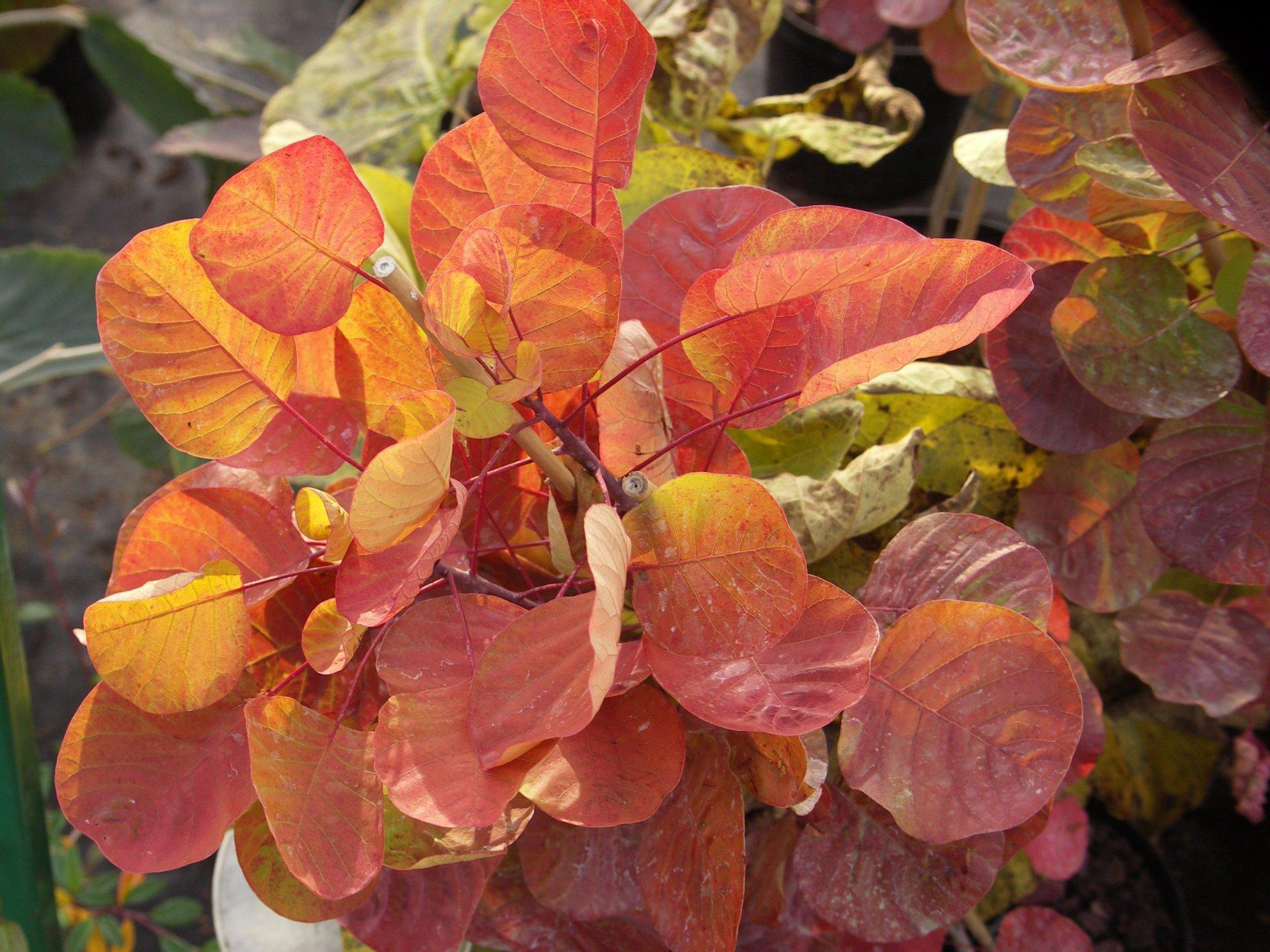 Сорт золотолистной скумпии английской селекции - лауреат премии за Садовые Заслуги Королевского Садоводческого Общества Великобритании. Весной кустики этой скумпии опушаются нежной золотистой листвой оттенков лайма и молодого лимона. Особенно, когда похожие на монетки листья дрожат на ветру. А к осени эти листики окрашиваются светящимися оттенками кораллового, розового, оранжевого, изумрудного, золотого... А уж цветение ее подобно розовому дыму или облакам над Фудзи весной.