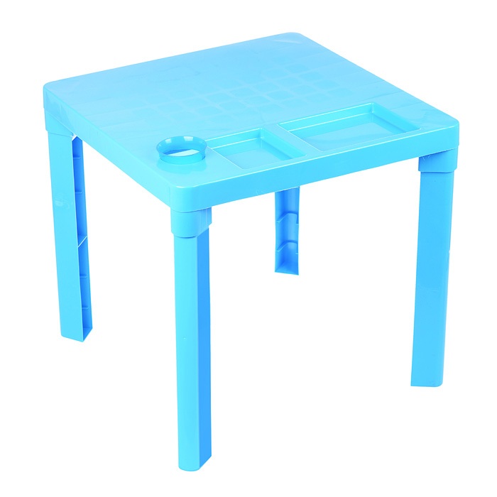 Сборный детский стол для игр, творчества или занятий. Выполнен из качественных и нетоксичных материалов, поэтому безопасен для детей. Не имеет запахов, устойчив к воздействию солнечных лучей, перепадам температур и влаге. Легко очищается при помощи теплой воды или бытовых средств. Имеет подстаканник и два разъёма под письменные принадлежности. Для большей безопасности изделие оснащено закругленными краями.