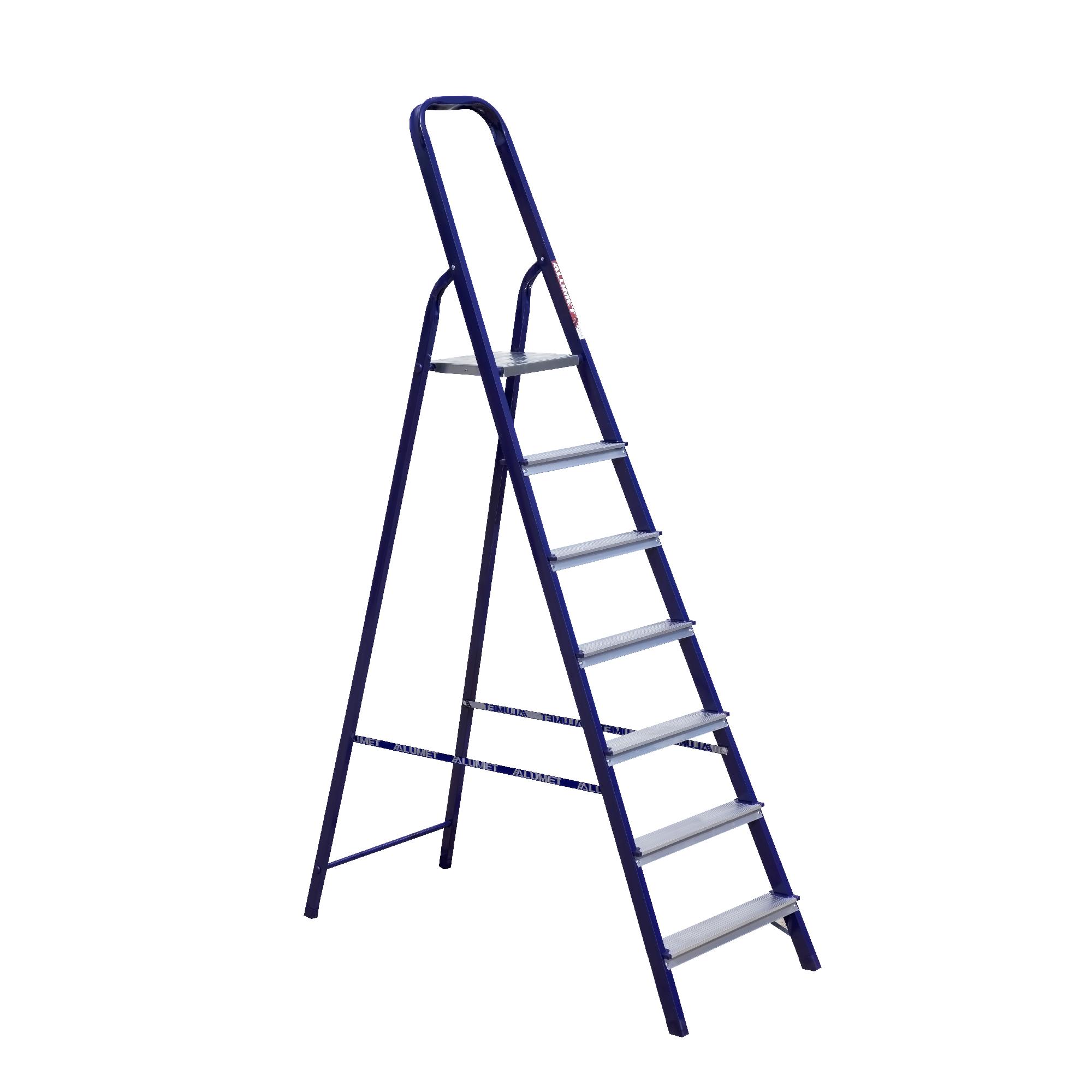 Стремянка алюминиевая Алюмет 7 ступеней широко применяется для выполнения строительных, ремонтных, отделочных работ на высоте. Данная модель лёгкая, удобная в использовании. Изготовлена из алюминия, устойчива к коррозии и отличается надежностью и продолжительным сроком службы с возможностью использования в помещении и на улице. Дополнительно оснащена пластиковыми наконечниками препятствующие скольжению и обеспечивающие устойчивость и также растяжками, фиксирующие раскрытие, которое защищает от складывания. Рабочая площадка с прорезиненной поверхностью, расположена на высоте 145 см.
