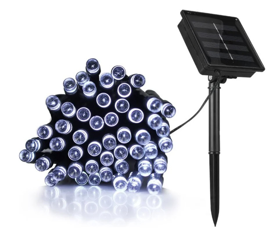 Гирлянда работает от солнечной батарее. Данный способ получения энергии является наиболее экологичным и энергоемким. Питание происходит во включенном режиме. С наступлением темноты LED диоды загораются и светят холодным белым светом, создавая умиротворенную обстановку.