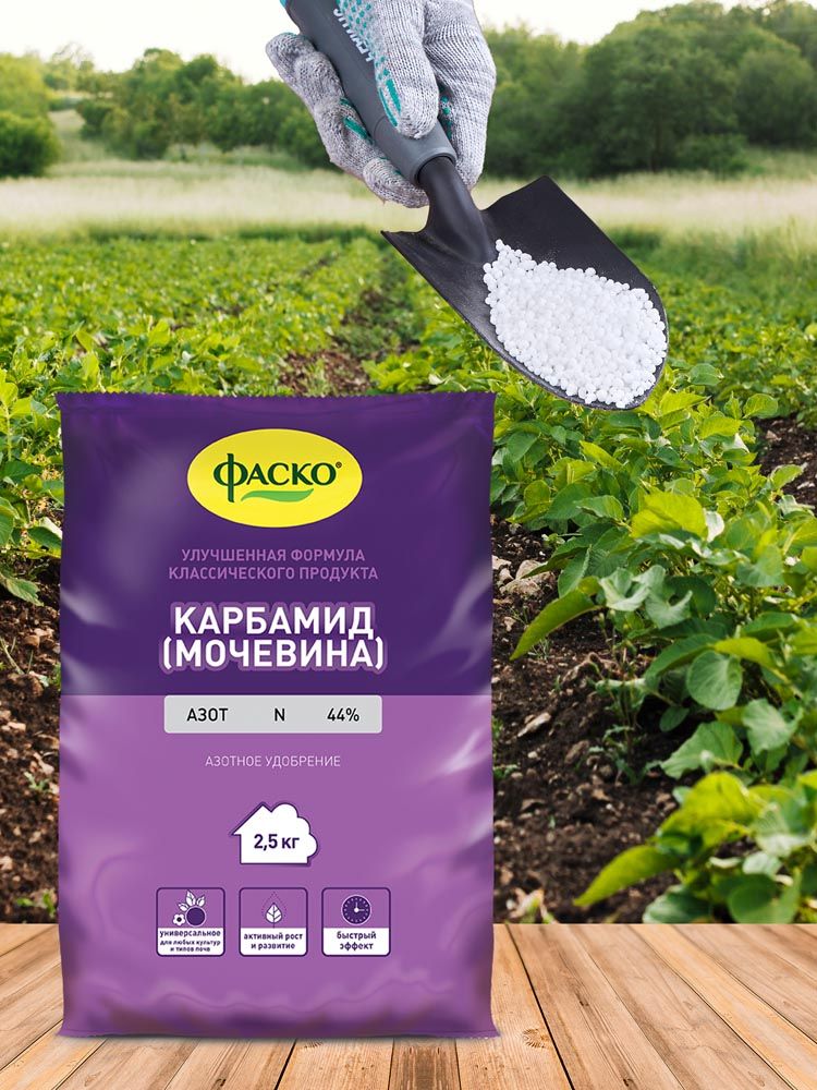 Удобрение сухое Фаско Карбамид минеральное – универсальная добавка, которая используется для подкормки садовых и огородных культур в период их активного роста. В состав входят природные вещества, которые помогают при пересадке, высадке рассады, перенести неблагоприятные погодно-климатические условия. Благодаря органическому происхождению, удобрение способствует интенсивному и полноценному развитию и обильному укреплению, цветению растений, создает развитие зеленой массы.
