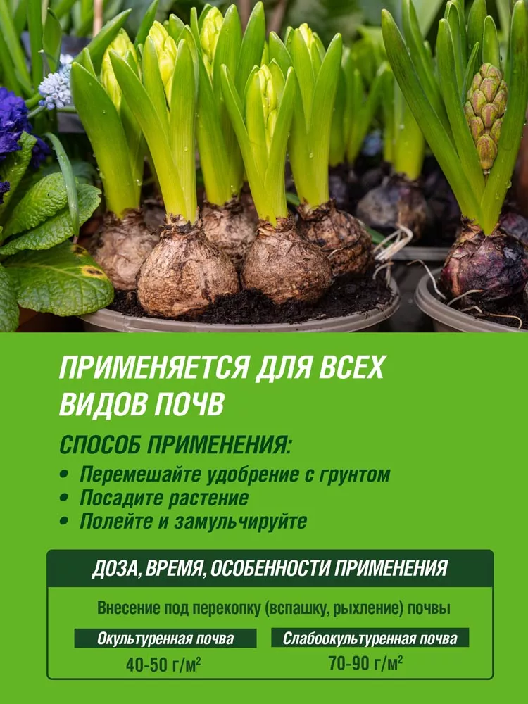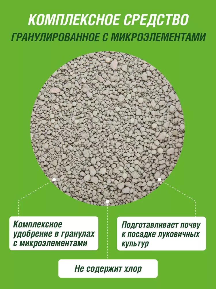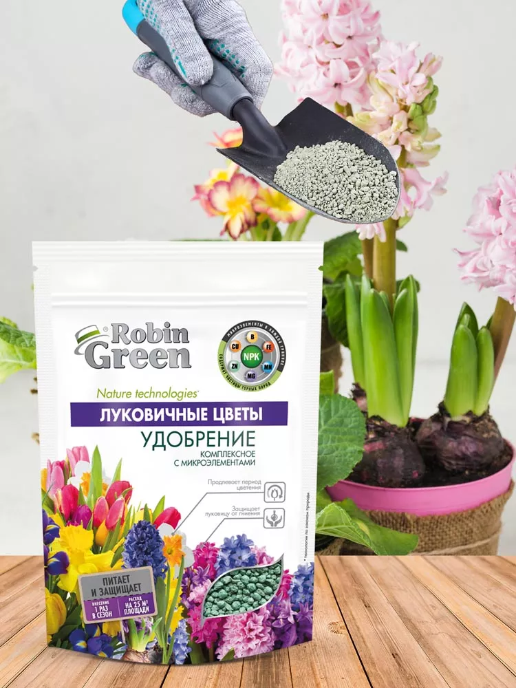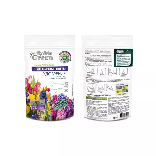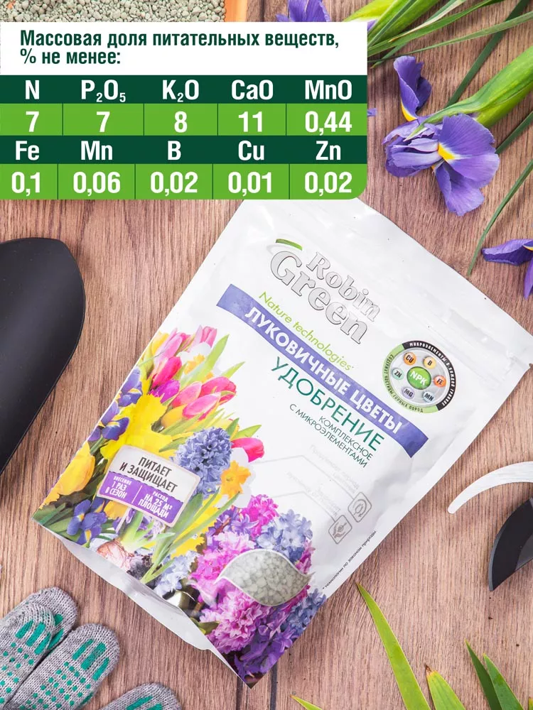 Удобрение сухое «Робин Грин» минеральное гранулированное Луковичные Цветы является сбалансированной подкормкой, использующейся для выращивания растений. Комплексная добавка отличается без хлорным составом, что благоприятно влияет на рост и развитие растений. Подкормка улучшает структуру и плодородие почвы, повышает вкусовые качества урожая. Стоит отметить, что питательное удобрение сформировано в гранулу, что позволяет ускорить процесс внесения в почву.