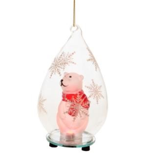 Украшение Медведь с подсветкой в стеклянном шаре – это милое декоративное изделие, предназначенное для украшения вашего дома к празднованию Нового года. Чудесный Медведь в шаре может также стать замечательным новогодним подарком для коллеги или друга. Будет отлично смотреться на елку вместе с другими елочными игрушками. В новый год мы все хотим верить в чудеса, и декоративная фигурка в стеклянном шаре поможет вам в этом. Дарите себе и своим близким новогоднее настроение!