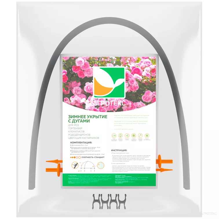 Зимнее укрытие из спанбонда с дугами – подходит для подготовки винограда, роз, многолетних цветов и теплолюбивых кустарников к зиме. Такое укрытие предотвратит излом растения от давления снежной массы, а также позволит сохранить тепло. Перед укрытием растений, убедитесь, что вы провели все остальные необходимые работы по подготовке растения к зимовке. Изделие безопасно при правильной эксплуатации.