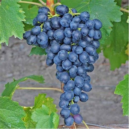 Виноград плодовый Аттика, фиолетовый - быстрорастущий среднерослый листопадный кустарник раннего срока созревания. Грозди конически-цилиндрической формы. Средний их вес составляет 800 гр. Ягоды овальной формы, темно-фиолетовые. Мякоть плотная, без косточек с обыкновенным вкусом.