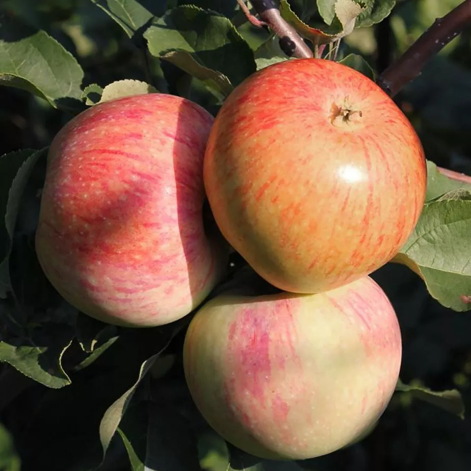 Плоды обладают средними размерами, средний вес одного яблока составляет 55-90 г. При полном созревании цвет плодов становится почти белым. Мякоть кисло-сладкая на вкус, сочная, очень приятная.