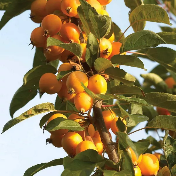Яблоня декоративная Макамик (Malus Makamik) – гибрид, невысокое дерево. Крона округлая раскидистая, высотой до 6 м. Листья красные, позже темно-зеленого цвета. Плоды некрупного размера, с длинной плодоножкой, плоскоокруглой правильной формы. Кожица гладкая, темно-красного. Мякоть белая, кисло-сладкие.