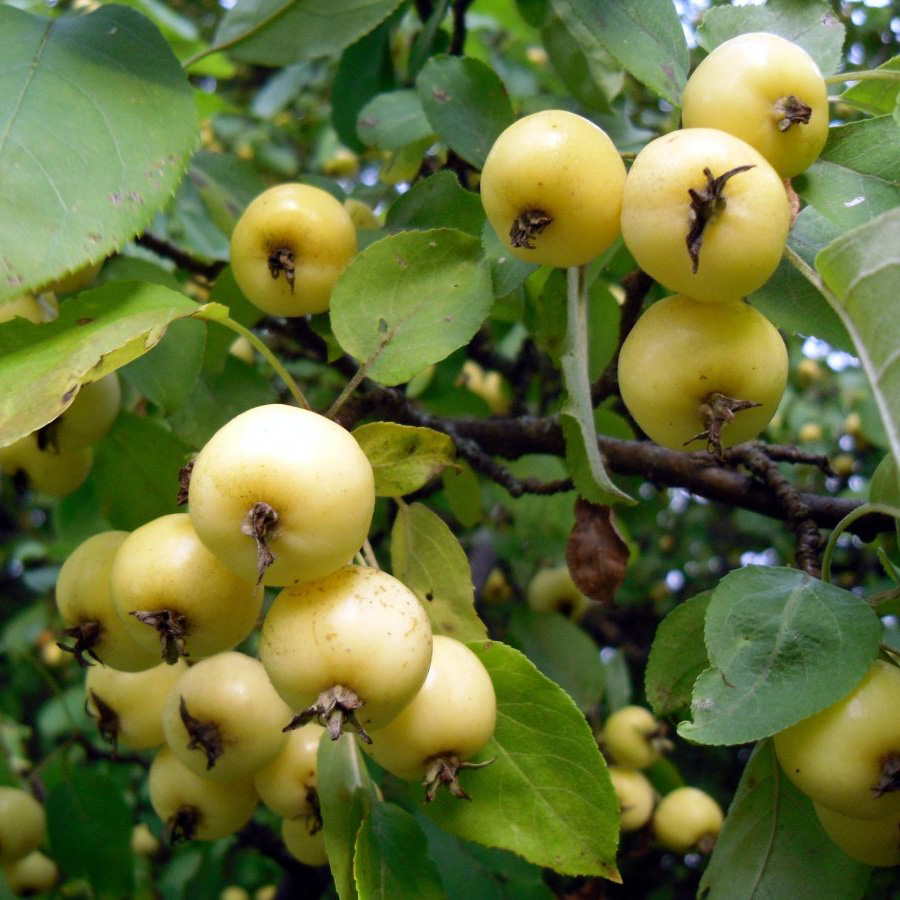 Размер яблок 5-7 см и вес около 30 г. Цвет кожицы и мякоти желтый. Вкус плода кислый.