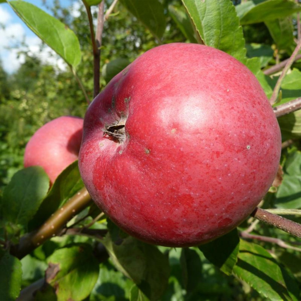 Яблоня Медуница – плодовое садовое дерево раннего срока созревания. Крона раскидистая. Максимальная высота 700-1000 см. Листовые пластины зеленого окраса. Плоды округлой формы, светло-желтого цвета с красным румянцем и массой до 100-150 гр. Мякоть сочная, на вкус медовая, сладкая. Урожайность с одного дерева до 180 кг.