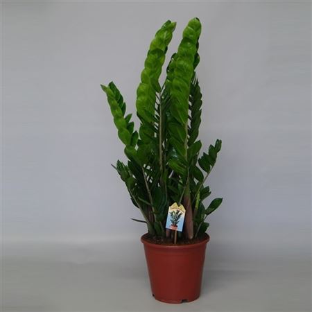 Цветок замиокулькаса напоминает початок, в котором собраны светлые, мелкие, невзрачные цветы. Сам початок образуется в нижней части растения и прикрыт зелёным покрывалом, поэтому малозаметен. Растёт замиокулькас медленно, но взрослое растение вырастает до одного метра высотой, поэтому скорее подходит для больших помещений, хотя как одиночное растение украсит любой интерьер.
