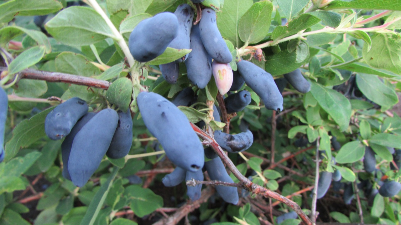 Жимолость Бакчарская юбилейная – неприхотливый плодовый кустарник раннего срока созревания. Максимальная высота 120 см. Данный сорт самобесплодный. Ягоды удлиненной формы, весом 2.5 гр. Кожица грубая, сине-фиолетового окраса с восковым налетом. Мякоть плотная, сочная, на вкус сладкая с небольшой горчинкой. Урожайность с одного куста 1.5-3.8 кг.