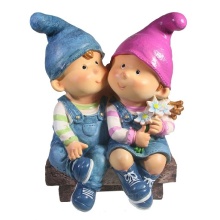 Фигура декоративная садовая Пара гномиков на лавочке полистоун 14х20х26см