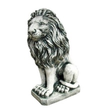 Фигура садовая Лев сидит, правый, серебро полистоун 35x25x50см